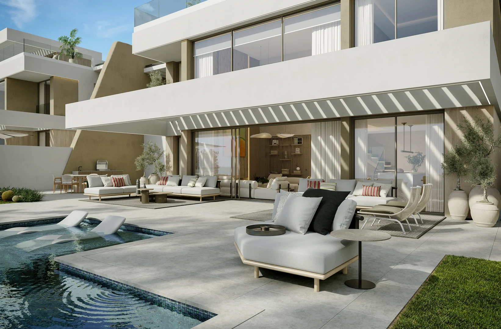 In addition, our villas provide a private oasis of relaxation with infinity pools—perfect for soaking up the sun and the views. With an extensive solarium and ample outdoor spaces, you can indulge in moments of tranquility or unforgettable outdoor entertainment. The villas also feature an open-plan floor, offering the ideal opportunity to customize the space to each client’s personal style and needs.